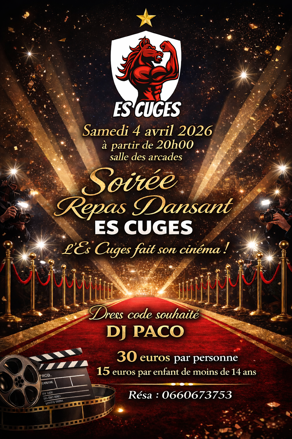 L’ES Cuges organise sa 4ème soirée repas dansant, sur le thème du cinéma (dress code) :